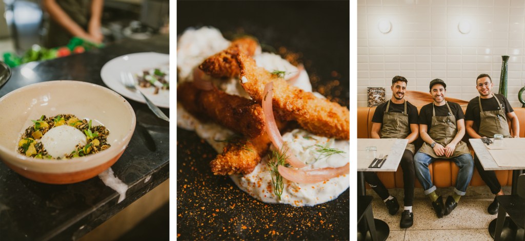 Cuisine ouverte, avant tout sur le monde, je découvre la nouvelle carte de septembre. Direction le Portugal, avec une tomates farcie revisitée, poulpe olive aneth, une vraie tuerie. Au carrefour des coups de coeur, les petits crispy chicken, sur leur lit de chou, façon coleslow, crème cornichon. Puis direction le grand nord, Sardine Gravlax, crème fumée caviar Capelan & concombre fermenté, lui aussi (ah oui..parce que je ne vous ai pas dis).